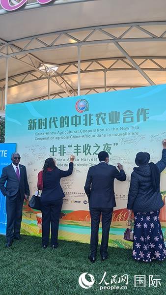 非洲国家使节在活动图片墙签名。人民网记者万宇 摄